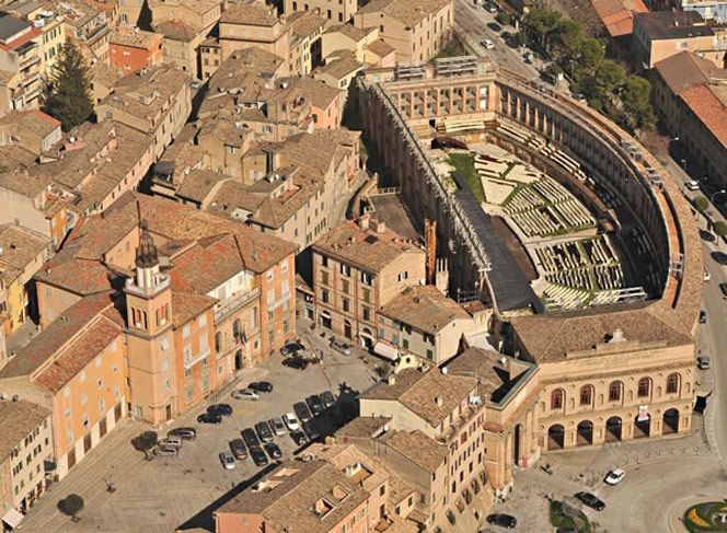 Ci aspetta un fuori programma, la visita guidata a Macerata. Arrivati, iniziamo dall’imprescindibile Sferisterio, arena semicircolare originariamente destinata al gioco del pallone col bracciale, che scopro essere stato uno dei giochi nazionali italiani più antichi fino al 1920 circa.