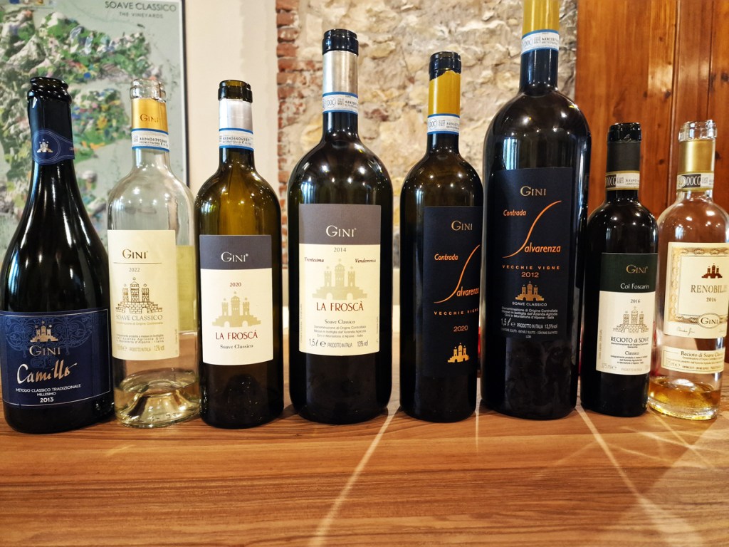Iniziamo “le danze” con la visita alle Cantine Gini a Monteforte d’Alpona (VR). Ci troviamo nel cuore del Soave classico, dove la famiglia Gini porta avanti questa attività dal 1570 (sì, avete letto bene!). Claudio e la giovane figlia Letizia ci accolgono e ci guidano attraverso la storia e la visita. Lui e suo fratello Sandro portano avanti l’attività del padre Olindo, che ha creato l’azienda e che a sua volta ha ereditato la passione dal nonno Giuseppe, un vignaiolo che oltre a vinificare vendeva il suo vino alle osterie e dava consigli su come fare il vino. Siamo nel territorio del Garganega e per tradizione ogni famiglia vinificava la quantità di vino che occorreva. Claudio ricorda con affetto il nonno portare con un carretto una grande botte contenente il Soave d’annata e una più piccola di castagno con quello dell’anno precedente.