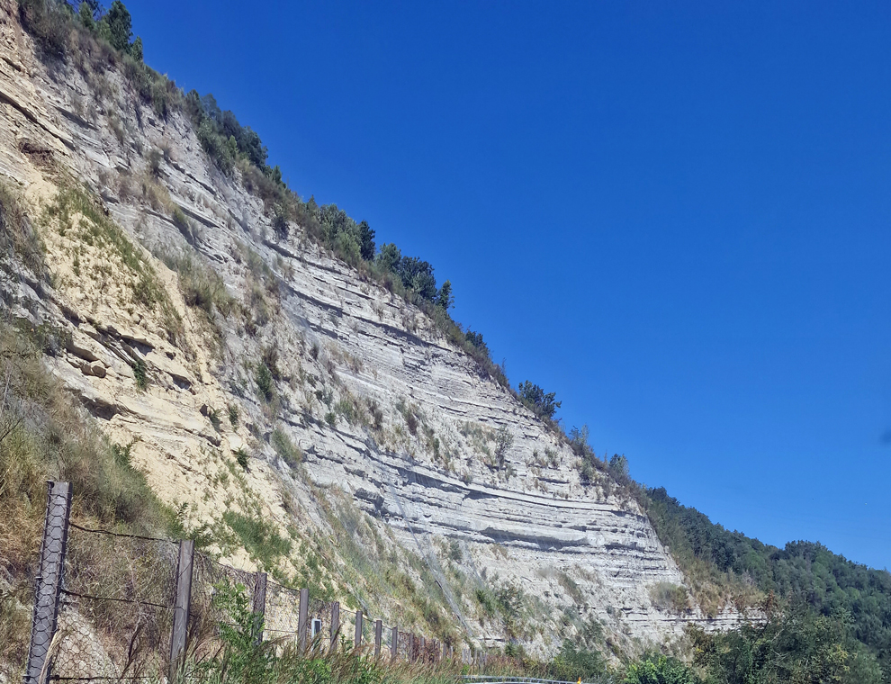 Lasciando l’autostrada, dopo aver attraversato colline verdi e coltivate, ci si trova in mezzo ad altre più alte e sfumate di bianco che riflettono la luce del sole. Questo territorio origina dal massiccio marnoso arenaceo dell’Appennino, dove in superficie troviamo una sabbia quasi bianca prodotta dal disfacimento delle rocce e che contiene inserti simili al galestro. Al livello delle radici troviamo invece la matrice marnosa, che la pianta deve rompere con le radici per arrivare a trovare l’acqua e le sostanze minerali disciolte in essa. Viti resistenti, orgogliose e volitive come gli abitanti di questa terra. Il risultato nel calice premia tutti gli sforzi!