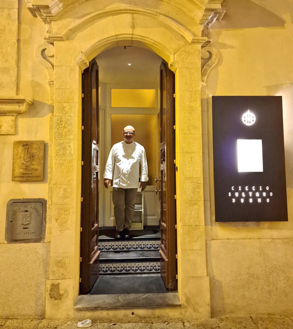 Sultano ti accoglie sulla porta del locale nella bellissima cornice di Ragusa Ibla, decide insindacabilmente il menù (che più personalizzato di così non si può) e te lo ‘cuce’ addosso come un vestito.