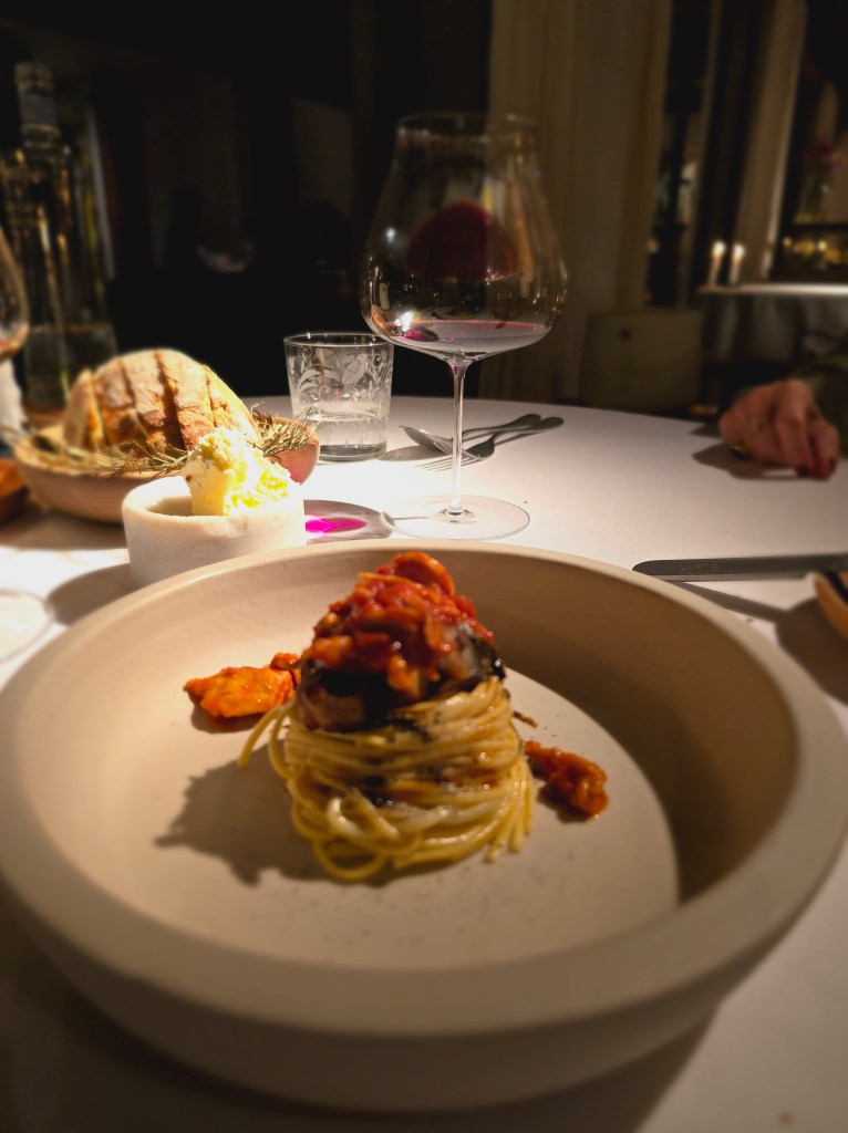 - Tagliolini “Bossolasco” al burro acido, coniglio, anguilla