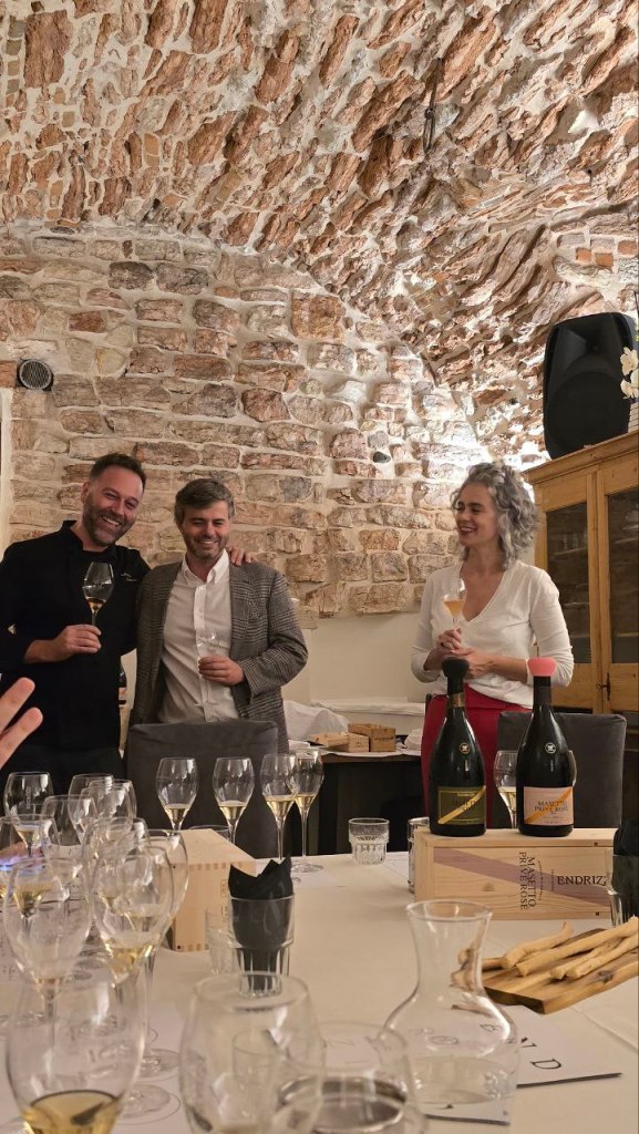 Siamo stati accolti in una suggestiva sala del Ristorante Ai Vicoli dalla famiglia Endrizzi, che ha fatto gli onori di casa. Paolo, Christine, Lisa Maria e Daniele, ora alla guida della cantina, ci hanno raccontato la loro storia e guidato nella degustazione, durante la quale non sono mancati stimolanti momenti di confronto.