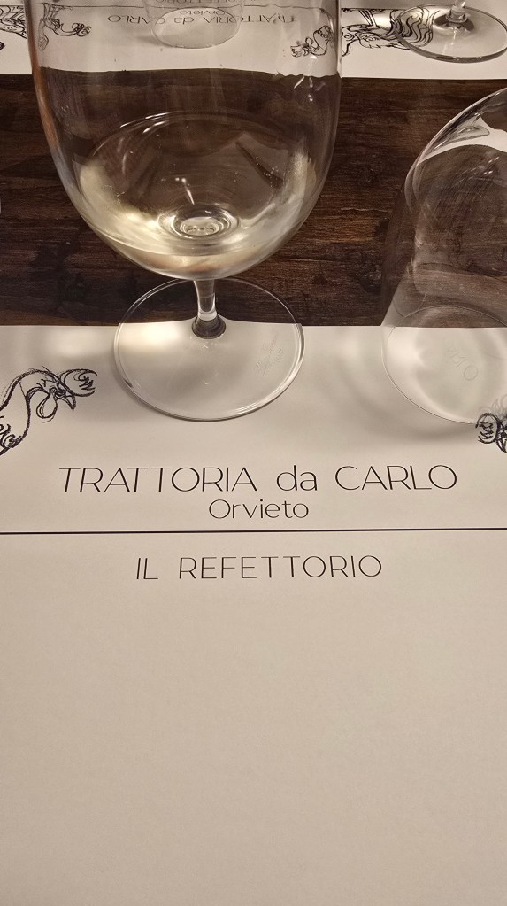 Un capitolo a parte andrebbe dedicato a Carlo, Patron della Trattoria da Carlo, dove abbiamo piacevolmente cenato la sera prima della nostra giornata ad Argillae. Carlo è proprio uno degli ultimi osti rimasti in attività. Burbero quanto basta, capisci subito che devi affidarti a lui. E non ce ne siamo pentiti! Cucina umbra, sapori genuini e quella qualità che purtroppo in molti casi si è persa per strada. Giulia e Carlo sono sposati da dieci anni e fa bene al cuore vedere che si capiscono al volo. Del resto l’abbinamento cibo/vino esiste dalla notte dei tempi…