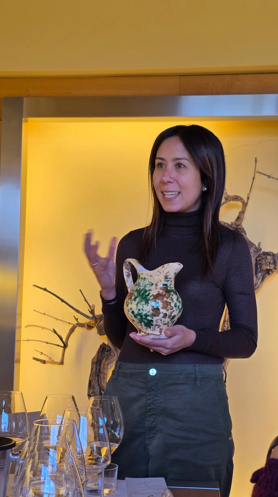 Giulia spiega come si è arrivati gradualmente alla realizzazione del progetto. Dopo molte ricerche sulla produzione di anfore, decide di farne realizzare tre, utilizzando solamente l’argilla della tenuta, al produttore Artenova. L’estate scorsa, però, nota una perdita in un’anfora e si rende conto che ignorandola avrebbe rischiato di buttare via il prezioso contenuto. Non è questa la strada dunque.