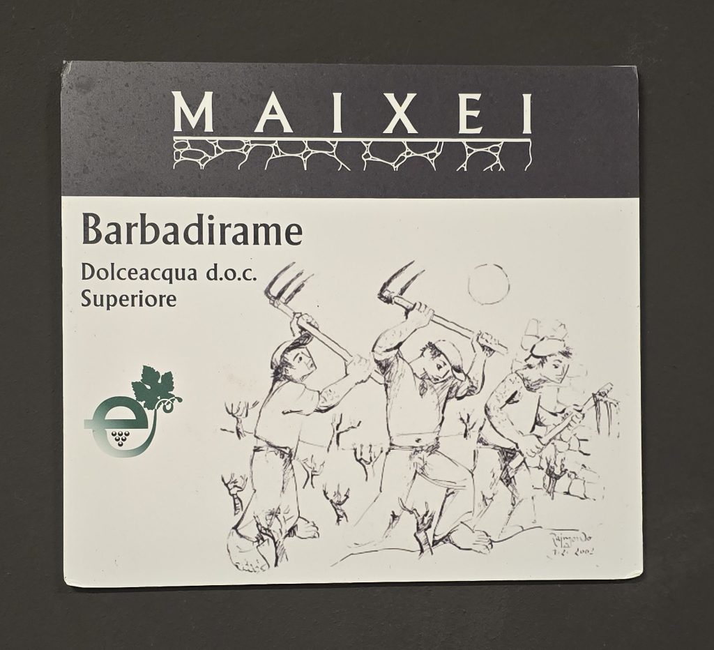 “Mario Raimondo, detto Barbadirame, (1923 – 2010) era un pittore dolceacquino che Picasso definì ‘uno che conta’. Con la tenacia e la serietà dei lavoratori della sua terra, ne ha rappresentato gioie e dolori, cieli e abitanti e con nostro orgoglio dà oggi il nome e l’immagine al Barbadirame Dolceacqua Superiore, uno dei vini eroici di Maixei. Il nostro Rossese fa parte del progetto di Proposta Vini, che ci vede coinvolti come produttori di vini estremi, figli della fatica e della tenacia dell’uomo“.