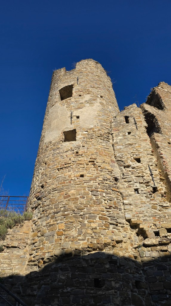 Veniamo quindi catapultati nel tardo Medio Evo, quando Fabio ci racconta la storia di Lucrezia, protagonista dell’etichetta del passito. Era il 1300 quando Lucrezia, ragazza diciannovenne di Dolceacqua, decise insieme all’amato di sposarsi in segreto per evitare lo Jus Primae Noctis, all’epoca imposto da Imperiale Doria. Qualcuno fece la spia e Doria ordinò di arrestare la ragazza e di imprigionarla nelle segrete del Castello. Lasciata senza acqua e cibo per ottenere l’assenso alla barbara regola, la ragazza piuttosto di cedere si lasciò morire. La rabbia e lo strazio del vedovo innamorato fu tale che con uno stratagemma riuscì a entrare nel castello e a minacciare con un coltello alla gola Imperiale Doria, costringendolo così ad eliminare la barbara regola. Da allora, il 16 agosto si celebra una grande festa in cui le donne preparano la michetta, dolce tipico di Dolceacqua, distribuendolo alla gente del luogo e accompagnandolo con il motto “la michetta la diamo a chi vogliamo noi“.