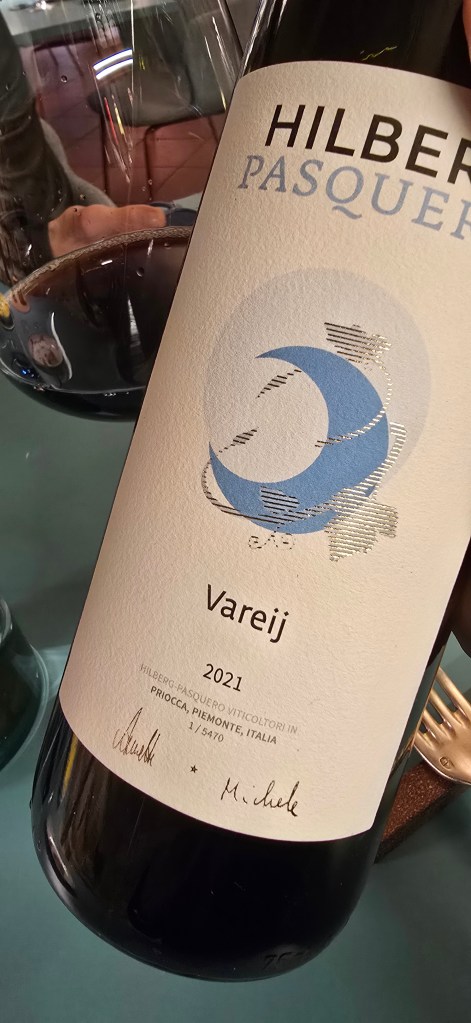 In abbinamento, un vino particolare che non avevo mai assaggiato e che ci ha consigliato Fulvia, ovvero Vareij di Hilberg Pasquero. Brachetto e Barbera, solo acciaio, al naso è un’esplosione di fiori, soprattutto rosa e viola, oltre al fruttato della fragola. In bocca ha una sua finezza ma con un bel corpo, grazie alla barbera. Un matrimonio d’amore con le tagliatelle al ragù.