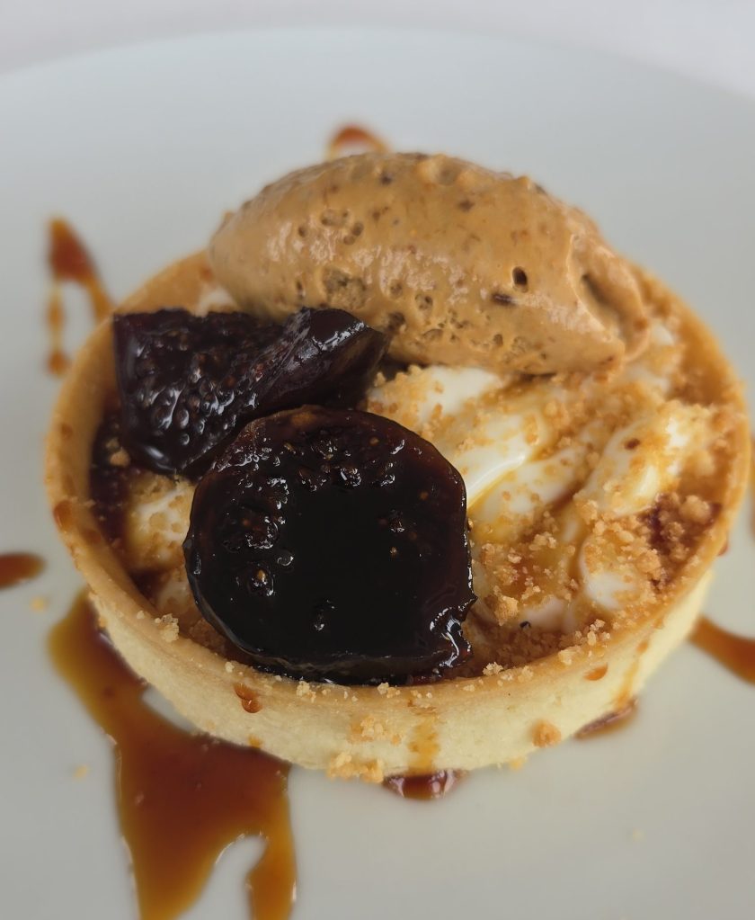 Crostatina allo squacquerone con gelato ai fichi caramellati