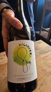 Consigliati dal giovane e talentuoso sommelier Samuele Calistri, abbiamo assaggiato Il Malandrino di Casa Mecocci Winery, un blend di vitigni autoctoni (Trebbiano, Malvasia Bianca, Greco di Vignanello, Grechetto) che, profumato e fresco, ben si è abbinato al nostro menu. Da segnalare il pane a lievitazione naturale di produzione propria da assaggiare con l’olio della Tuscia…
