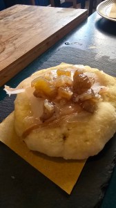 - pizza fritta con lardo di Mangalica e castagne caramellizzate dei Monti Cimini