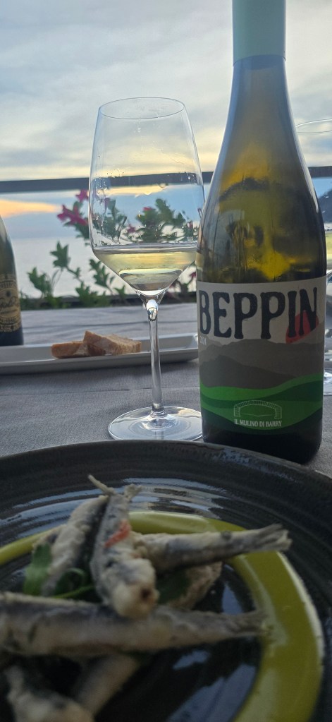 I vini presenti in carta, scelti con maestria da Marco Rezzano, Presidente di Ais Liguria (chi meglio di lui conosce le eccellenze del suo territorio?) vengono portati a braccia attraverso il sottopassaggio della stazione ferroviaria, in quanto non è possibile ottenere alcuna autorizzazione a nessuna ora del giorno o della notte per poter transitare sulla via ciclopedonale Bonassola- Framura.