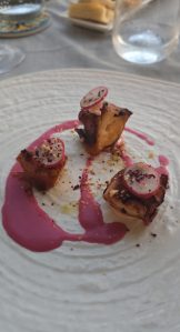 All’arrivo si percepisce subito lo spirito di accoglienza dello staff; si entra facilmente in una dimensione di vero relax mentre si scelgono i piatti dalla carta o si seguono i menu degustazione che spaziano dal mare alla terra senza dimenticare le esigenze veg. I pensieri rimangono fuori. Si respirano il mare e i profumi mediterranei, le luci del tramonto. Vera poesia, momenti che non si vorrebbe che finissero mai.