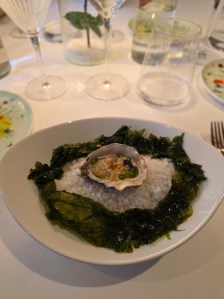Il Risotto mantecato con latte di canocchia e yuzu è un esempio di equilibrio perfetto tra la dolcezza del crostaceo e la sferzata citrica dell’agrume.