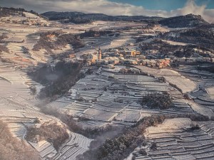 La cantina nasce dal recupero di un antico complesso rurale, un borgo appunto, che rischiava l’abbandono. La proprietà si estende su un altopiano tra i 500 e i 700 metri di altitudine.